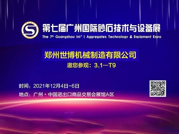 2021年12月4日-6日 ,第七届广州国际砂石技术与设备展将要在广州广交会展馆A区1.1/2.1/3.1馆举办!届时,世博机器将以企业观展商亮相于展会,展位号:3.1-T9。